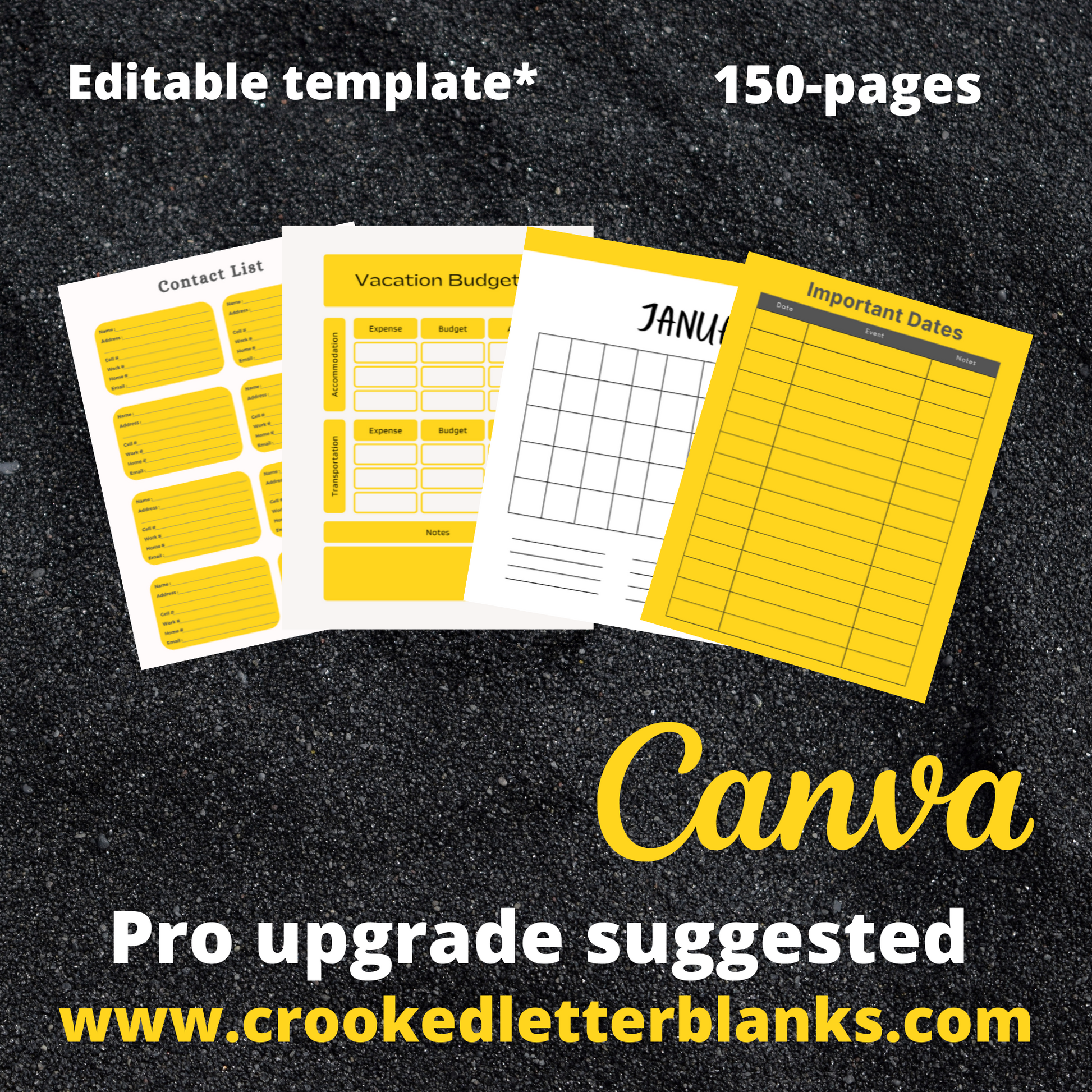 150-page personal planner, editable to fit your brand and personality as well as a little activity to past the time.